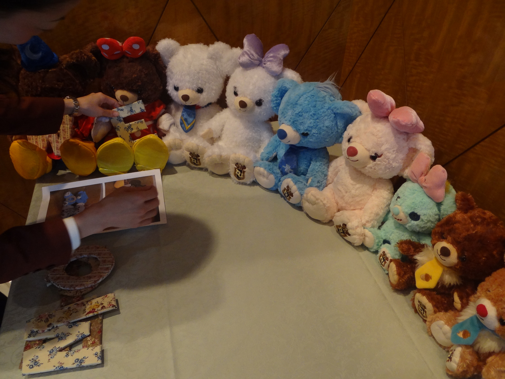 挙式が終わって・・ 受付を終えたゲストのみなさまが控え室にぞくぞくと入ってきます! (部屋はどこだったか忘れちゃいました^^; 式場によって順番が違いますが・・ ミラコは 挙式 → 受付 の順番でした(゜∀゜) 最後に親族も来賓控え室で待機です(・ε・) ここにもダフメイと、ウェルカムユニベアが飾られました(*'-'*) 自作衣装と記念撮影する叔母と叔父w 色んなところに飾られて喜んでいたそうです(*´∀`*) これはお友達が撮ってくれました☆ 真ん中に置いてあるのは席次表です〜 ちなみに席次表の中はこんな感じ! 手作り感満載ですねwでも力作(∩´∀`)∩ ソーサラーさんもお出迎え〜♪ ※この子はホテルのものですw 記念撮影もしてくれてました(*´艸`*) では〜(*´∀`)ノシ